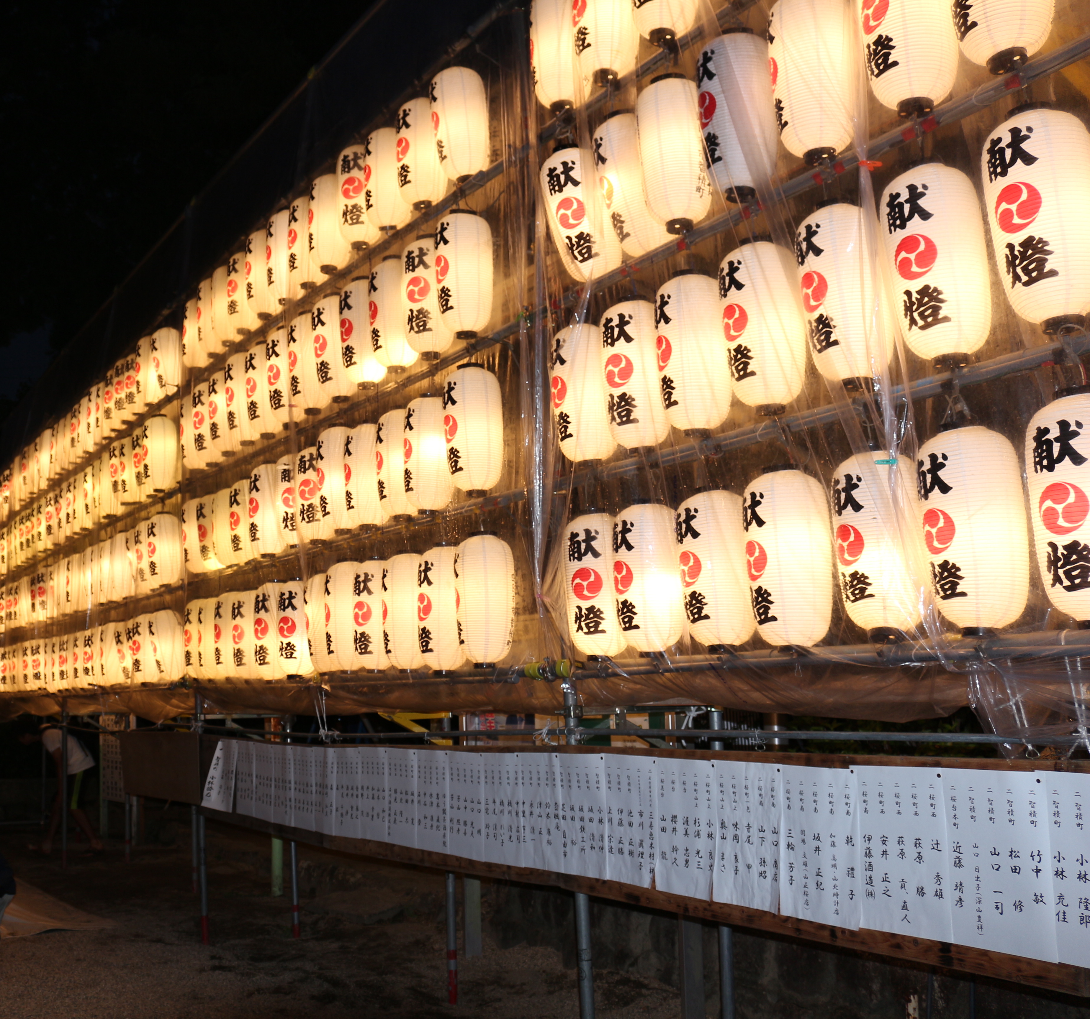 13日宵祭り・14日夏祭りの夜は、皆さまからご奉納頂いた献燈提灯を
